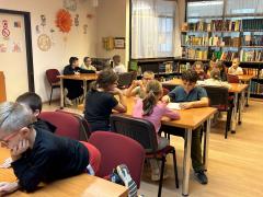 Az Eötvös József Általános iskola 3. b és 3.c. osztályos tanulói vettek részt könyvtárunkban a Kacor Király c. mesefeldolgozásos foglalkozáson.