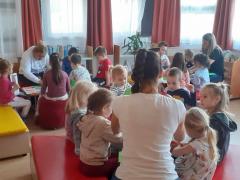 Anyák napjára... c. foglalkozáson anyáknapi verseket, dalokat elevenítettünk fel. Ez alkalommal kiskosárkát készítettünk a gyerekekkel.